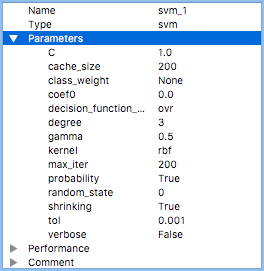 A list of hyperparameters for an SVM shows up. Each classifier has its own hyperparameters specific to that classifier that can be tuned. Intuitively, think of the hyperparameters as settings. You can adjust each hyperparameter to get the perfect setting. To relate this to machine learning, each hyperparameters is adjusted for an algorithm for it to get to desirable performance.